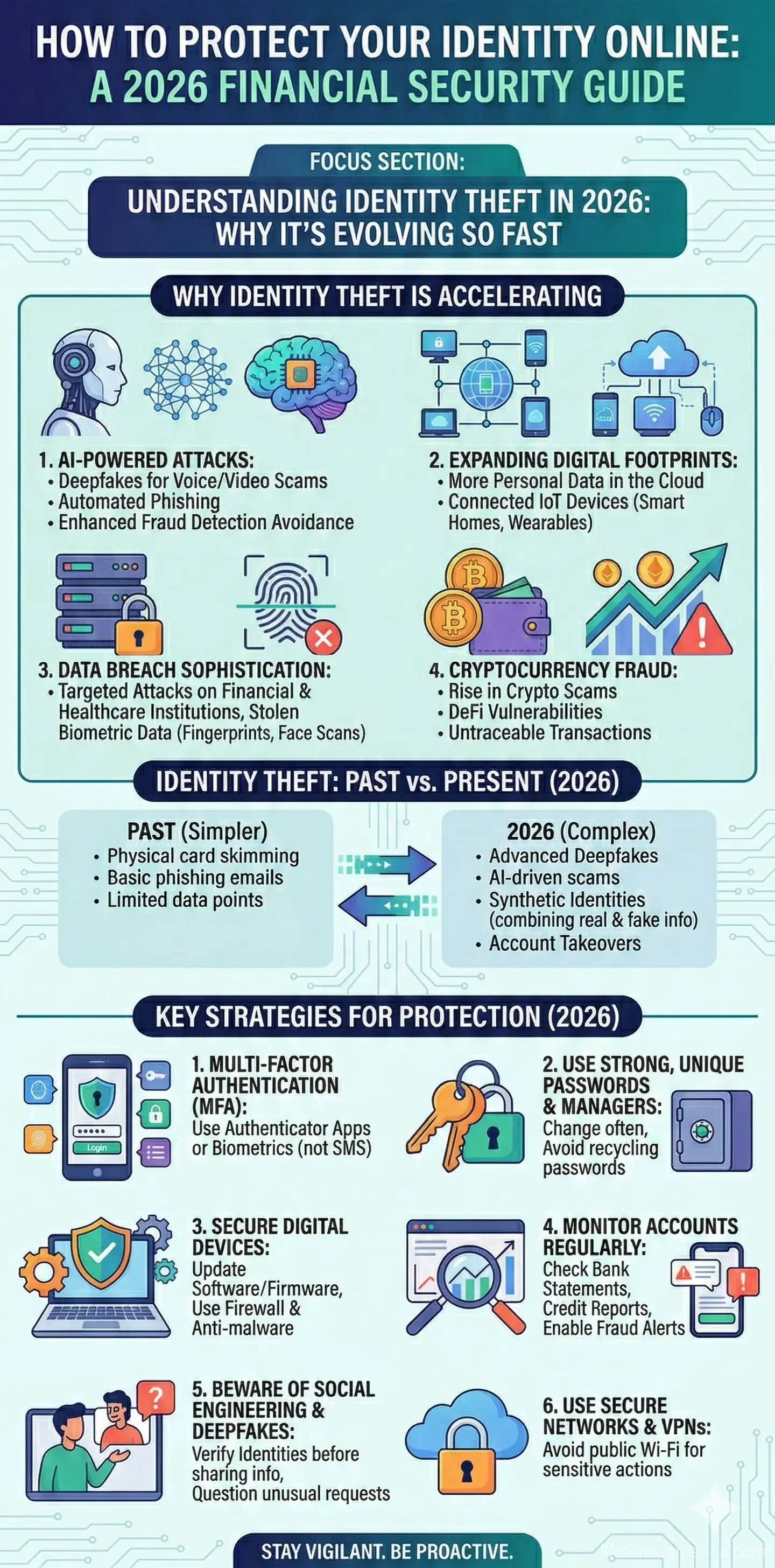 Imagine checking your bank account only to find thousands of dollars drained by a thief halfway across the world, all because they cloned your voice from a social media video. In 2026, identity theft isn't just a risk—it's a daily battle fueled by AI deepfakes and synthetic identities. With over 1.1 million Americans falling victim to identity fraud in 2025 alone, protecting your financial life online has never been more critical. This guide equips you with practical steps, U.S.-specific tools, and 2026 trends to safeguard your identity and secure your banking and accounts.