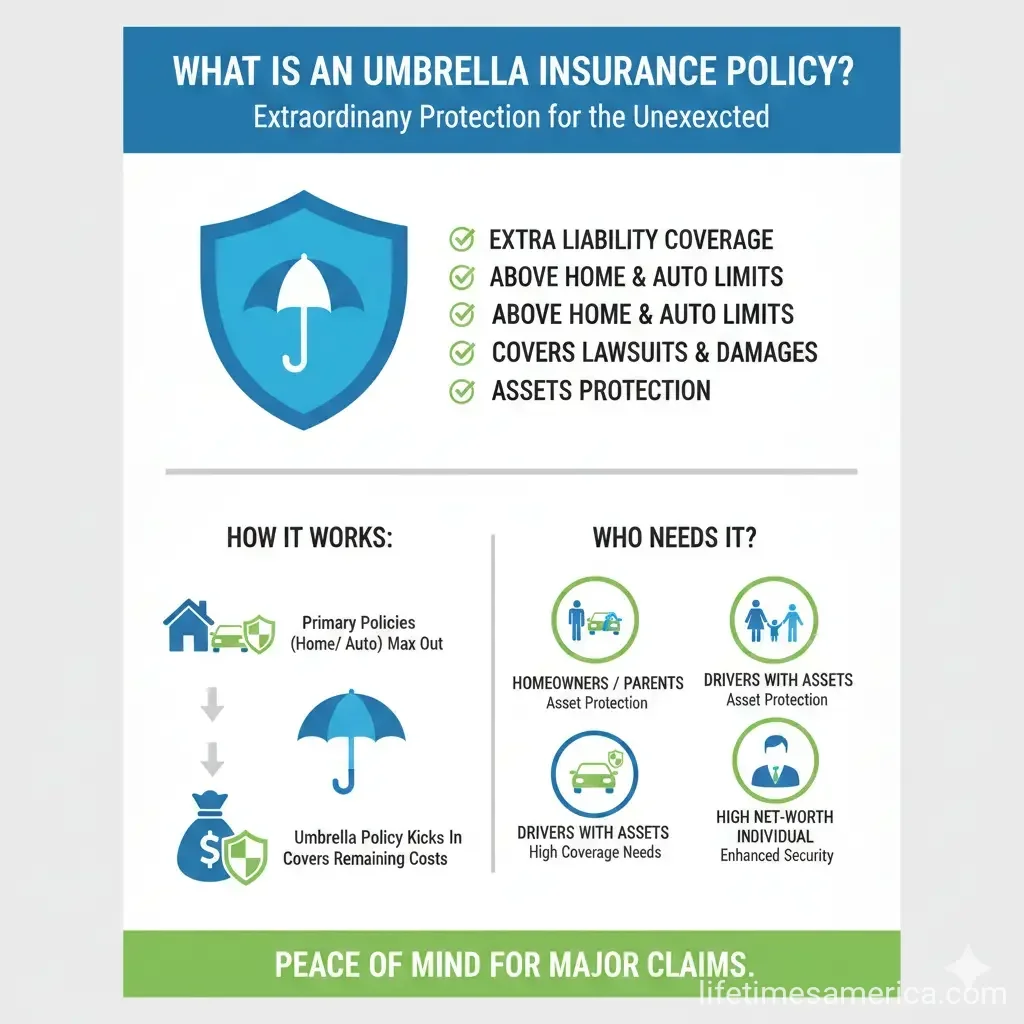 In the United States, where personal injury lawsuits average over $50,000 and can skyrocket into the millions, understanding what an umbrella insurance policy is and who needs it is crucial for financial security. Whether you own a home, drive a car, or have a family, this guide breaks it down with practical advice tailored for everyday Americans.[1][6]